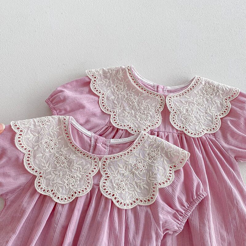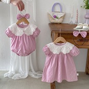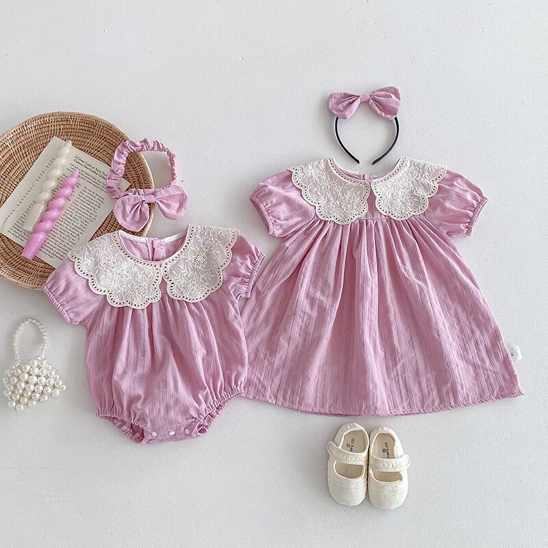 【海外からの取り寄せ】2025夏新作 子供服 姉妹お揃い 選べる2タイプ ヘアバンド付き 半袖 ロンパース ワンピース 可愛い #[ckd1094573_16000]【送料込み】【250509】