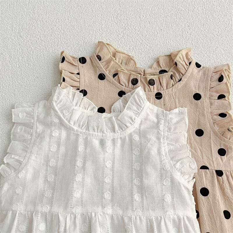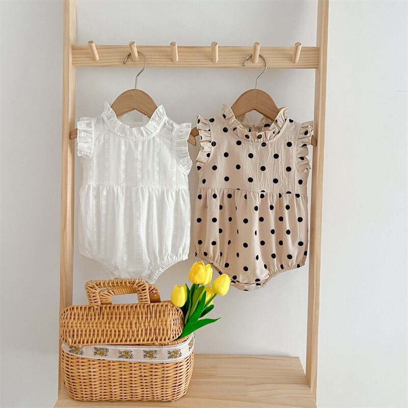 【海外からの取り寄せ】2025夏新作 ベビー服 女の子 ノースリーブ フリル ロンパース 立ち襟 水玉 カバーオール 可愛い #[ckd1094571_15500]【送料込み】【250524】