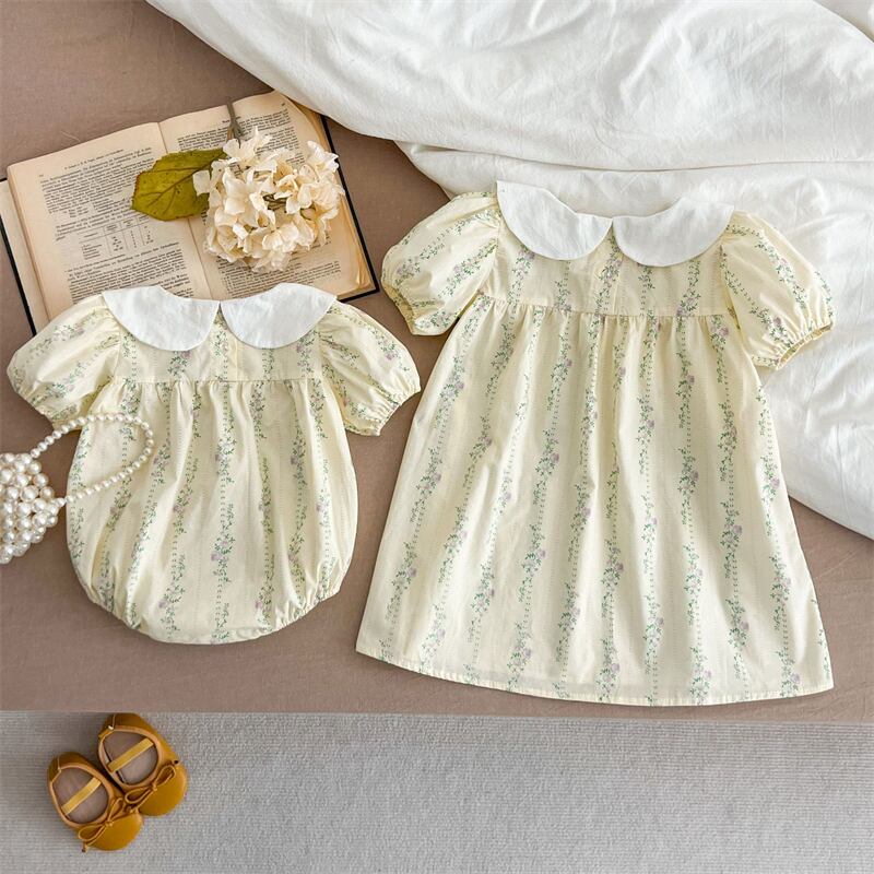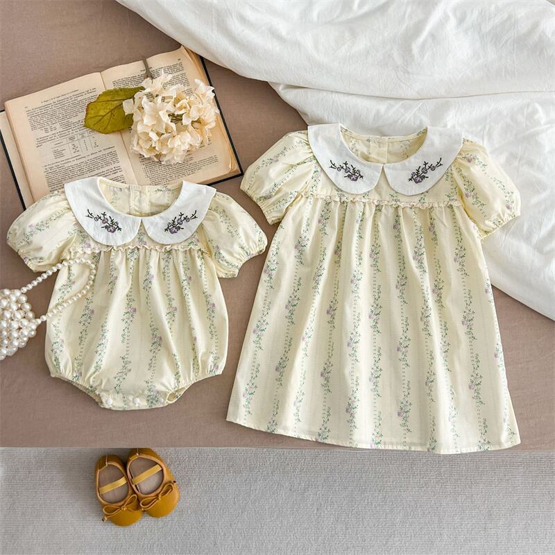 【海外からの取り寄せ】2025夏新作 子供服 姉妹服 選べる2タイプ 刺繍花柄 森ガール 半袖 ロンパース ワンピース 可愛い #[ckd1094569_18100]【送料込み】【250509】