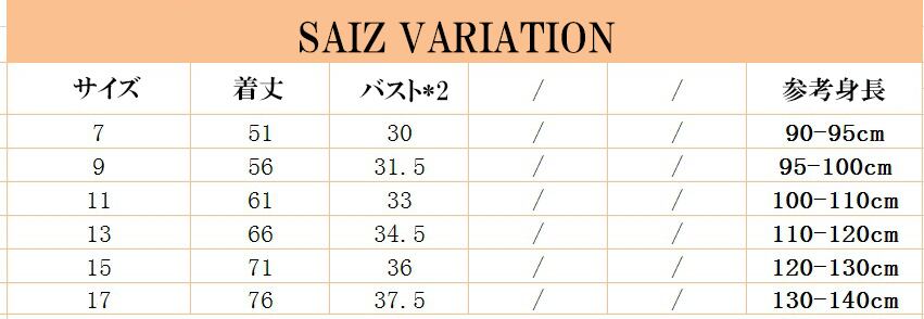 ※キッズ服のサイズはデザインによって、サイズが異なる恐れがあります。