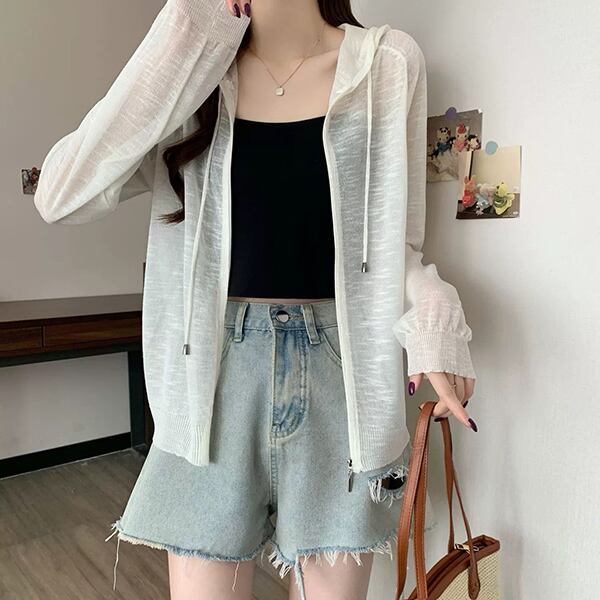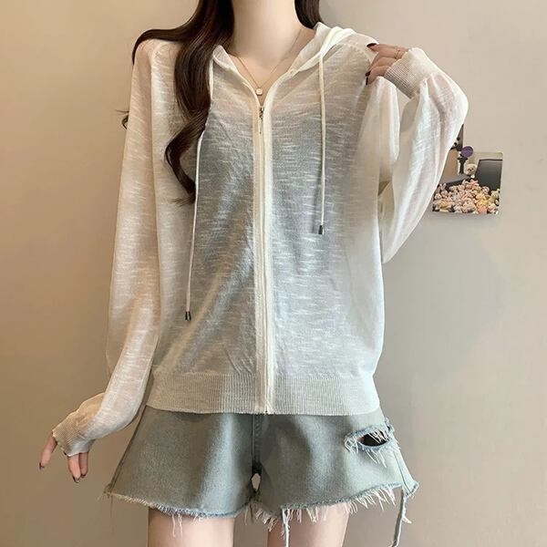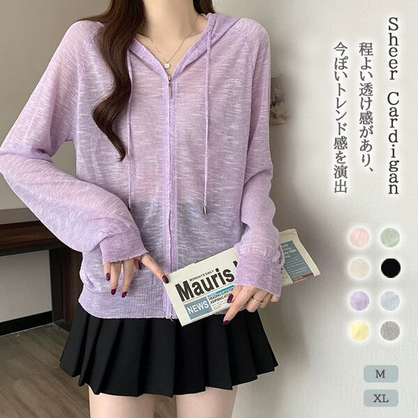 【海外からの取り寄せ】 2025新作 レディース シアー パーカー カーディガン 羽織 冷房対策 紫外線 UV フード付き #[cardigan198_9800]【送料込み】【250712】
