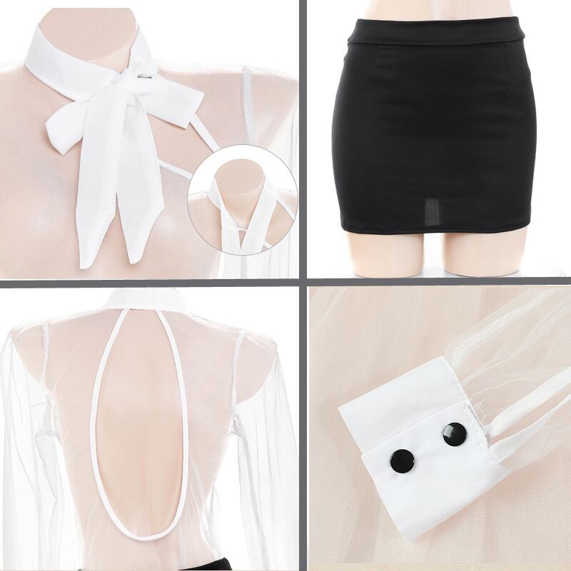 セット内容:ブラウス、スカート、Tバック