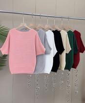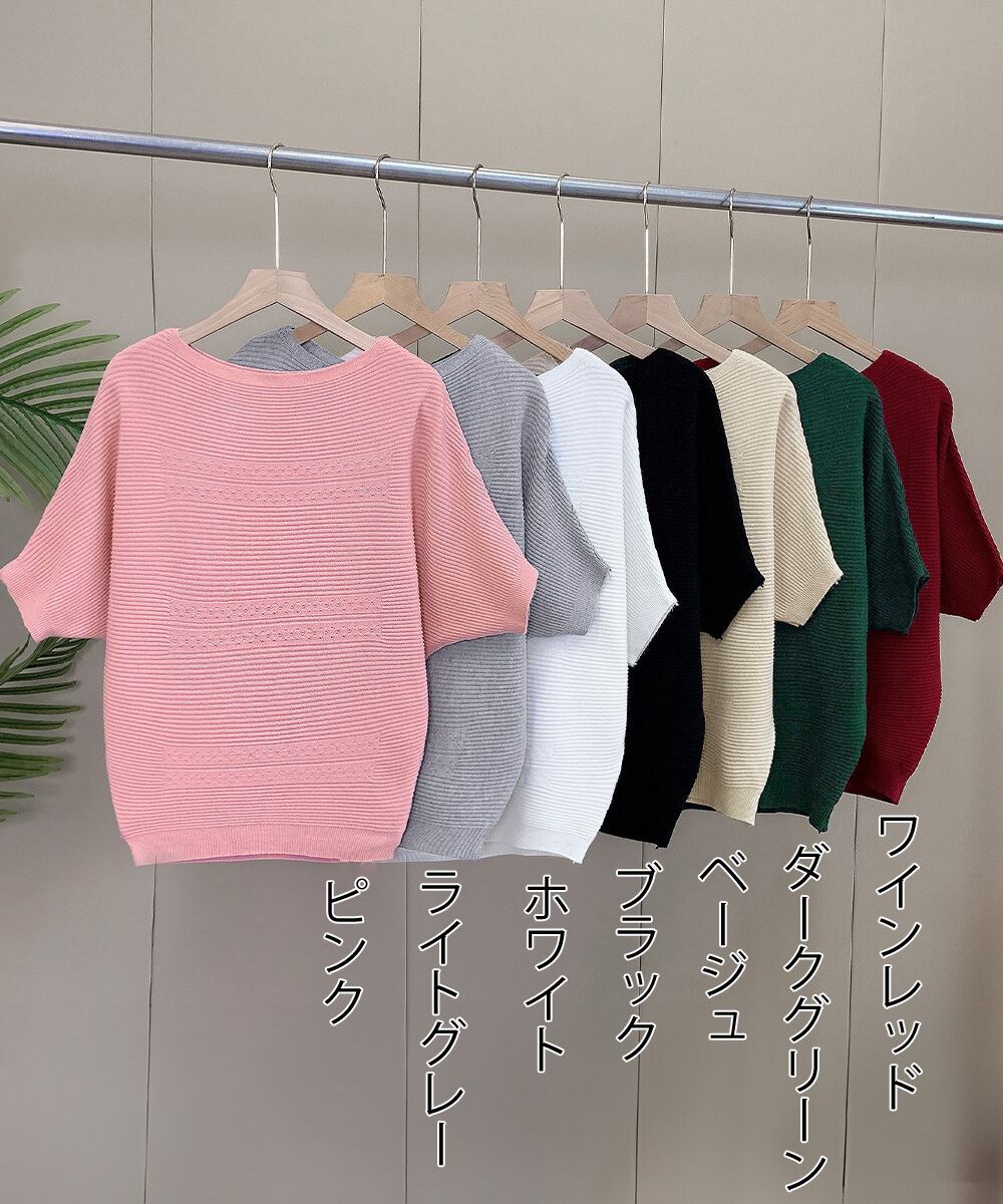 レディース ボートネックニットきれいめカジュアル ニットプルオーバー ベーシック 半袖ニット 着やせ 無地ニットソー春夏