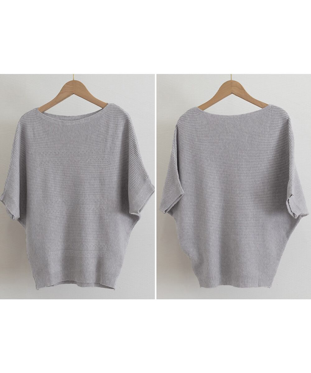 上品な編み目パターンが施された、柔らかな肌触りの半袖ニットトップス