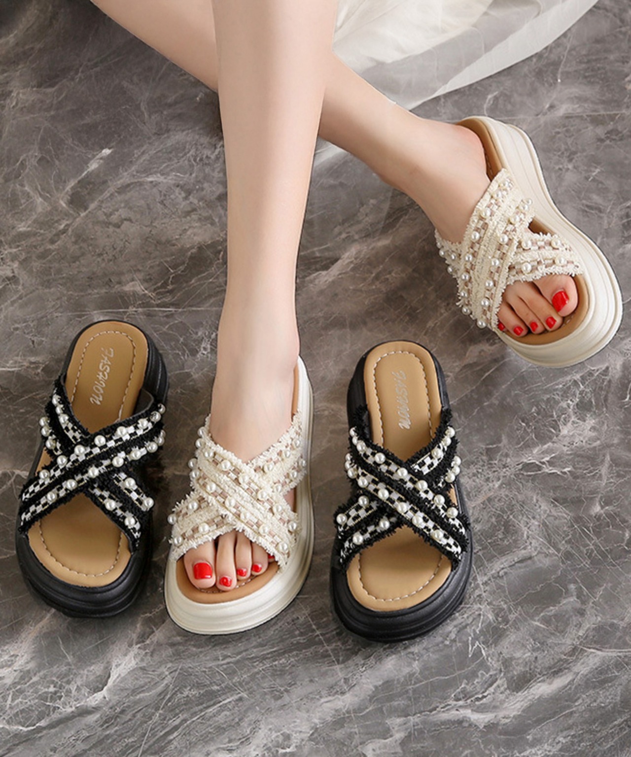 【日本倉庫からの発送】 厚底サンダルパール付クロスサンダル韓国風 #[87TTMY-012_20800]【送料込み】【250915】