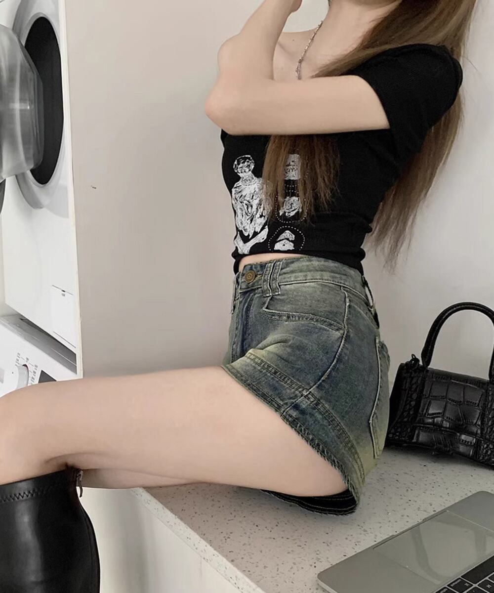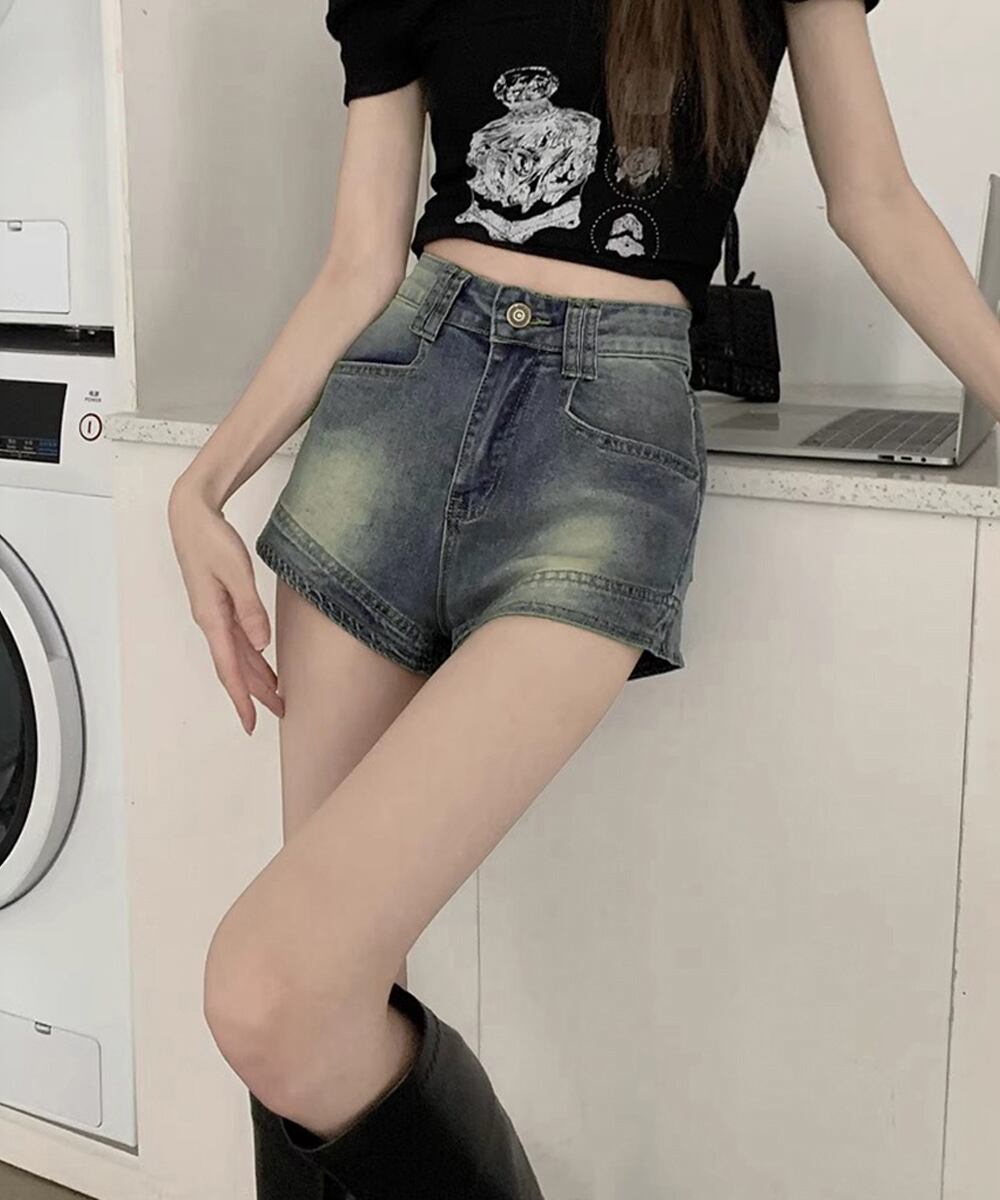 ブリーチデニムショーパン 美脚脚長ジーパン おしゃれ アメカジホットパンツ細見え 美尻ジーンズ レトロ短パン オルチャン