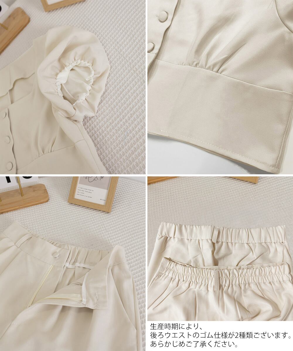 レディース パフスリーブトップススクエアネック 着やせ ハイウエストスラックスパンツ おしゃれ韓国風ツーピース大人可愛い