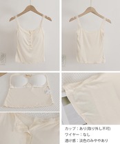 レディースキャミインナー スクエアネック インナートップス ボタン付き シンプル肌着 フェミニンリブブラキャミ セクシー