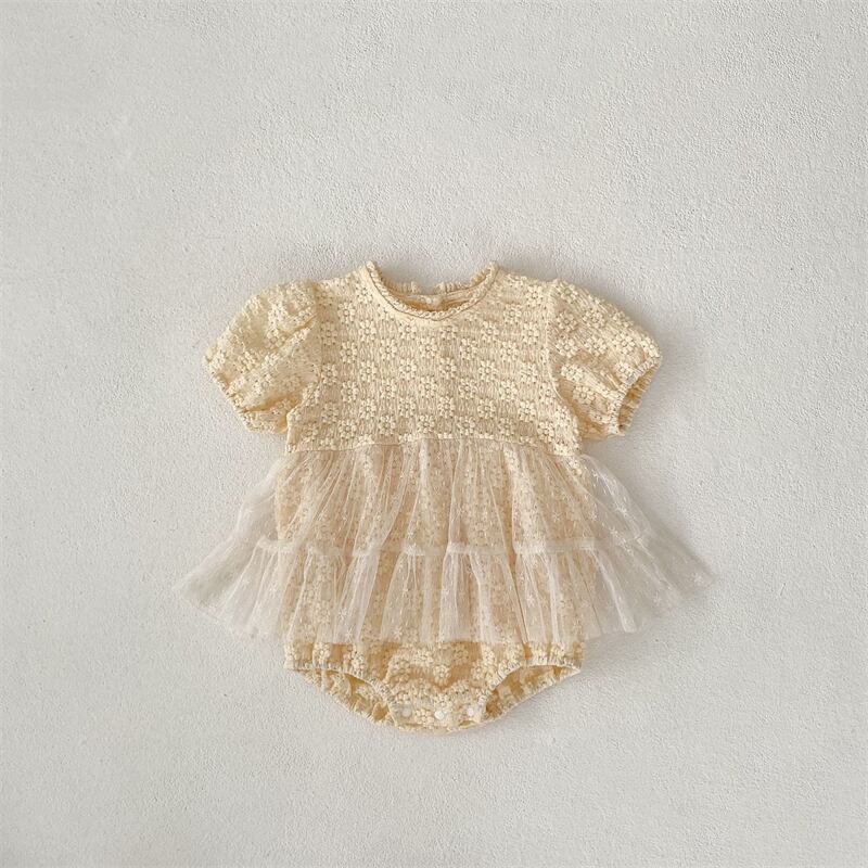 【海外からの取り寄せ】2025夏新作 ベビー服 女の子 ジャカード 花柄 半袖 立ち襟 ロンパース 可愛い 子供服 2色 #[ckd1094585_18200]【送料込み】【250509】