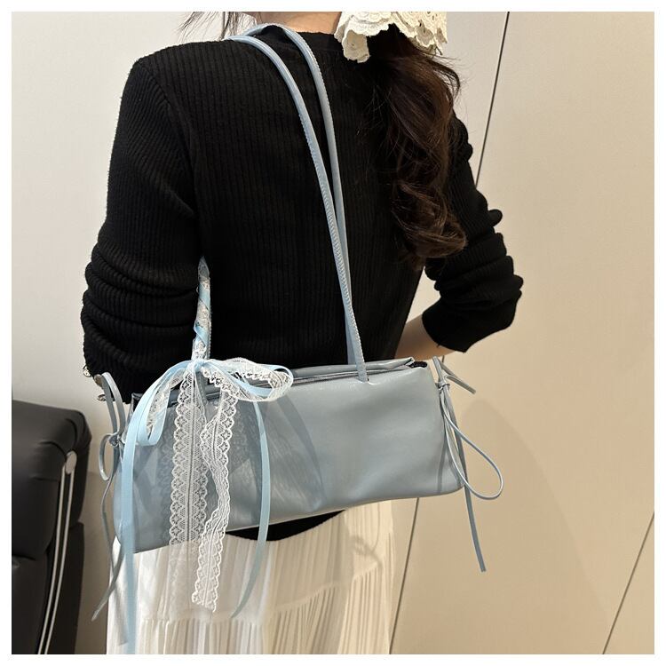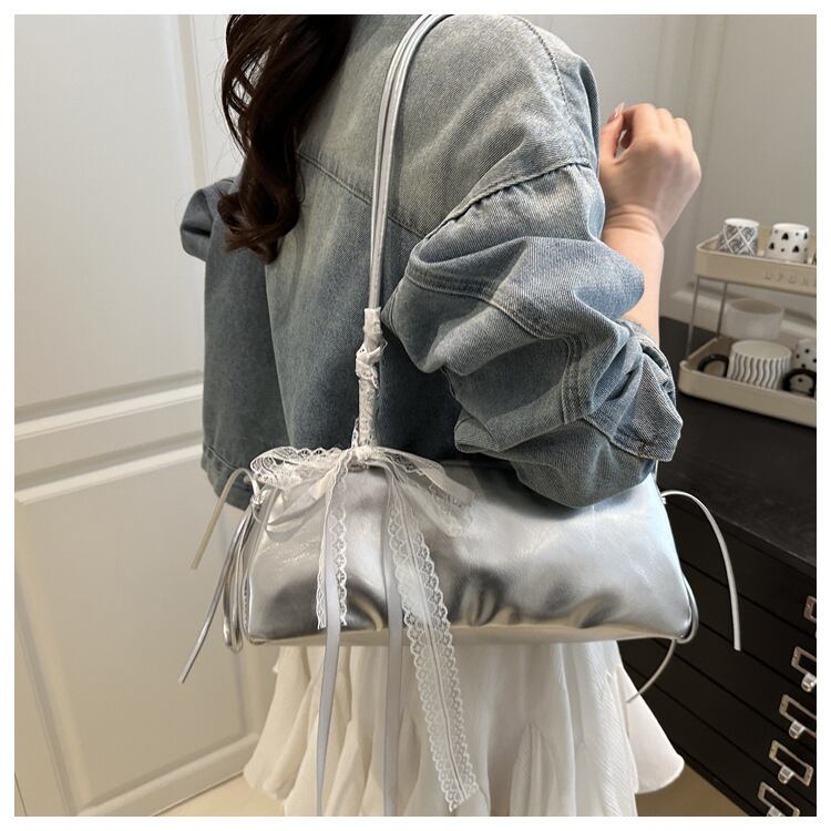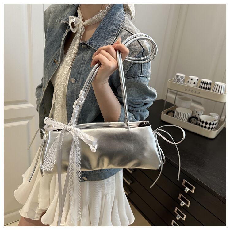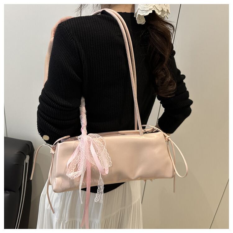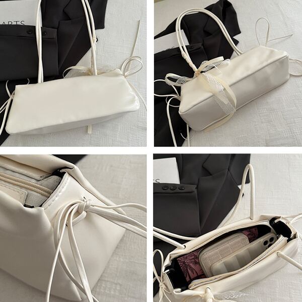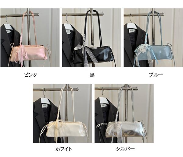 【海外からの取り寄せ】 2025新作 レザー調 横長 ショルダーバッグ リボン ハンドバッグ きれいめ コンパクト #[bag1713_9900]【送料込み】【250515】