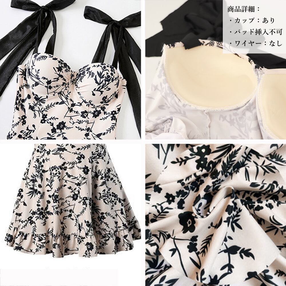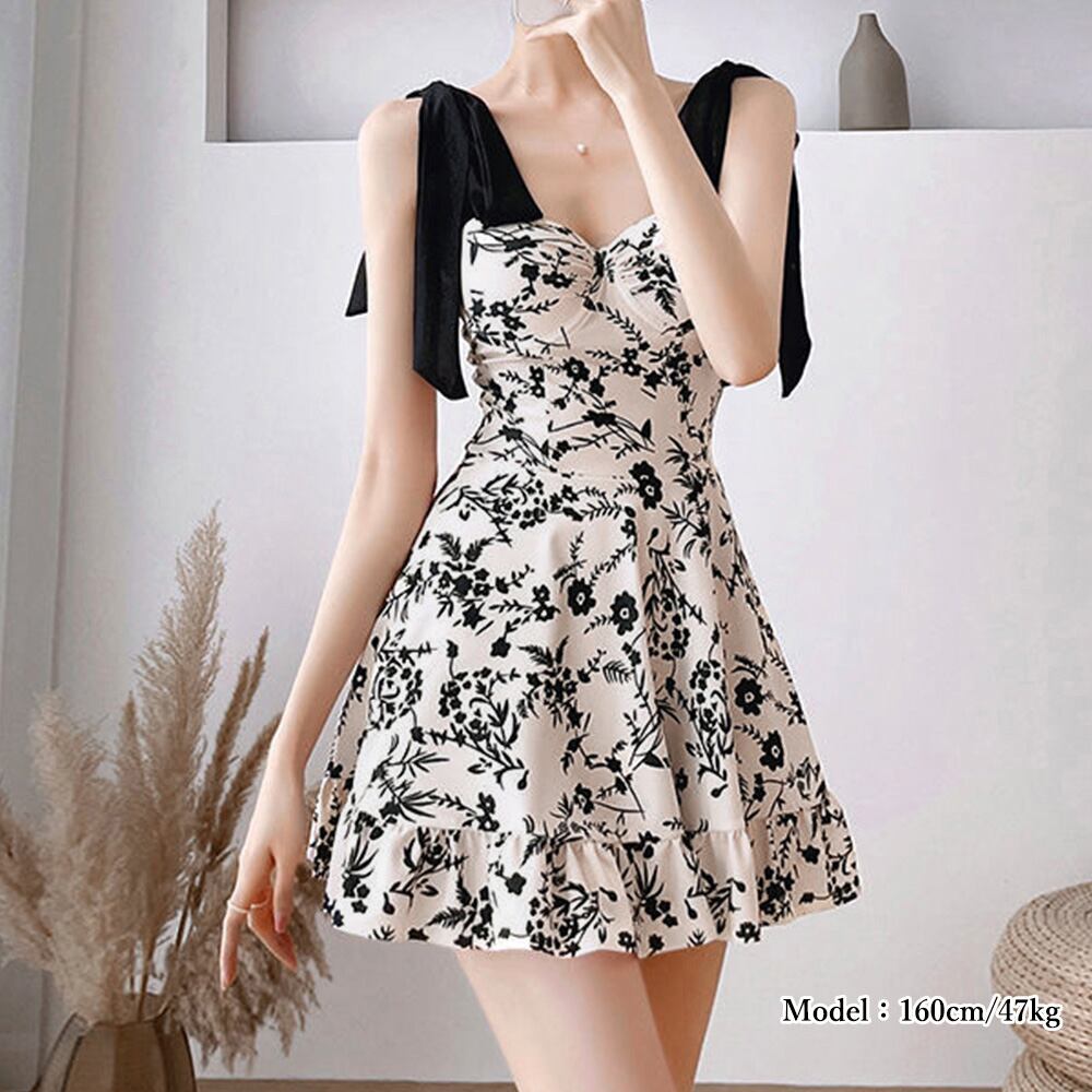 リボンストラップ水着 お洒落 スイムウエア 大人可愛い 海水浴 リゾート ビーチ オールインワン水着 露出控えめ 着やせ