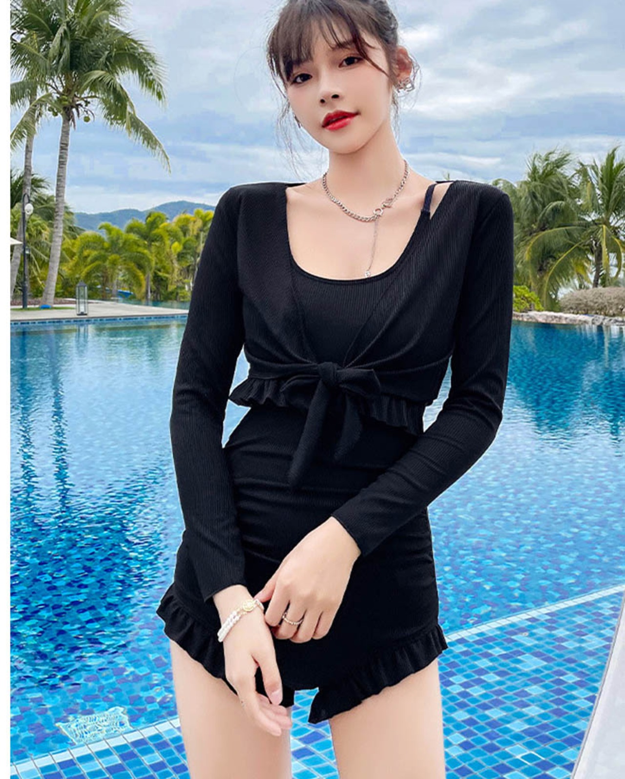 【海外からの取り寄せ】2021新作 レディース ワンピース 水着 リブワンピース ボレロ フリル 体型カバー 映え M L XL セクシー #[cv098_13800]【送料込み】【250524】