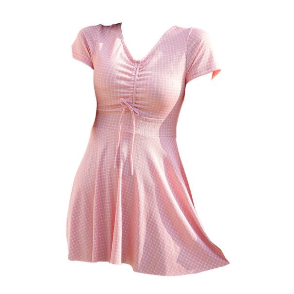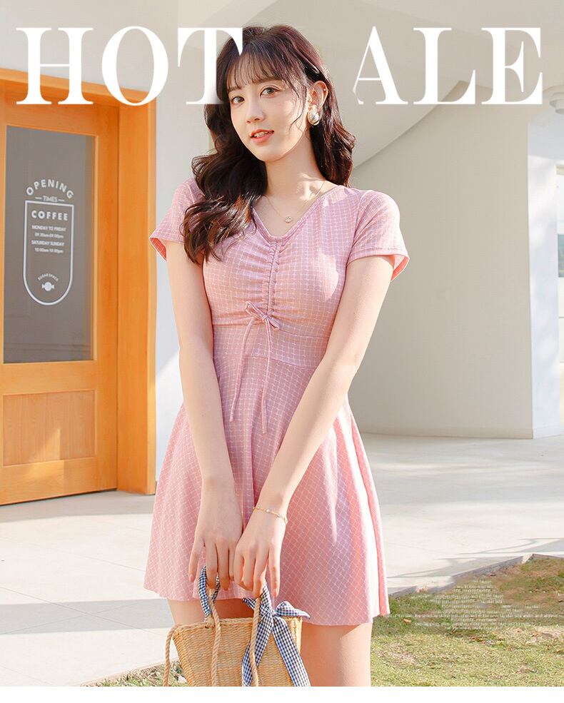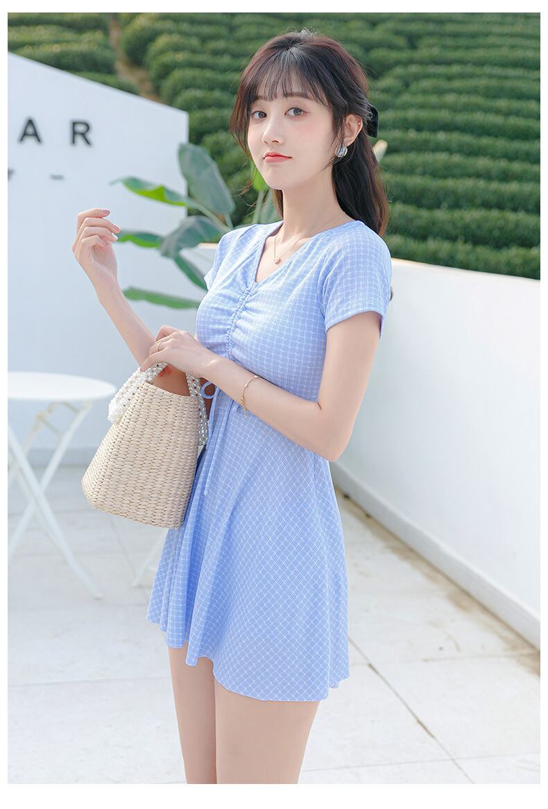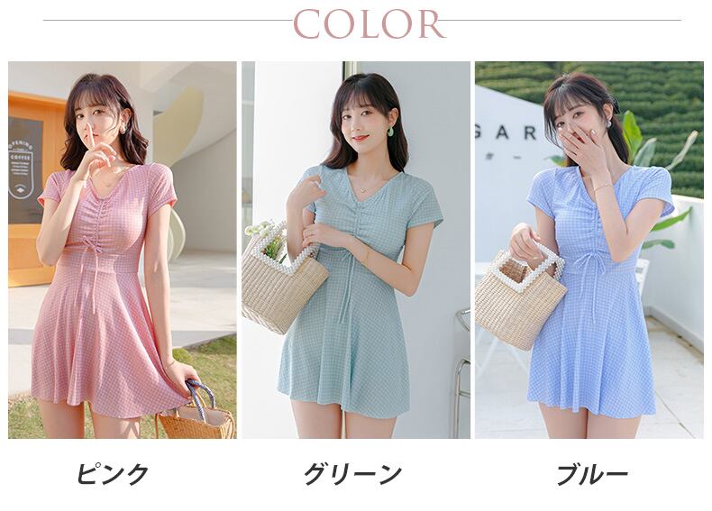 【海外からの取り寄せ】2021新作 レディース ワンピース水着 フレアスカート シャーリング パンツ付き 体型カバー 映え M-XL #[cv094_12800]【送料込み】【250712】