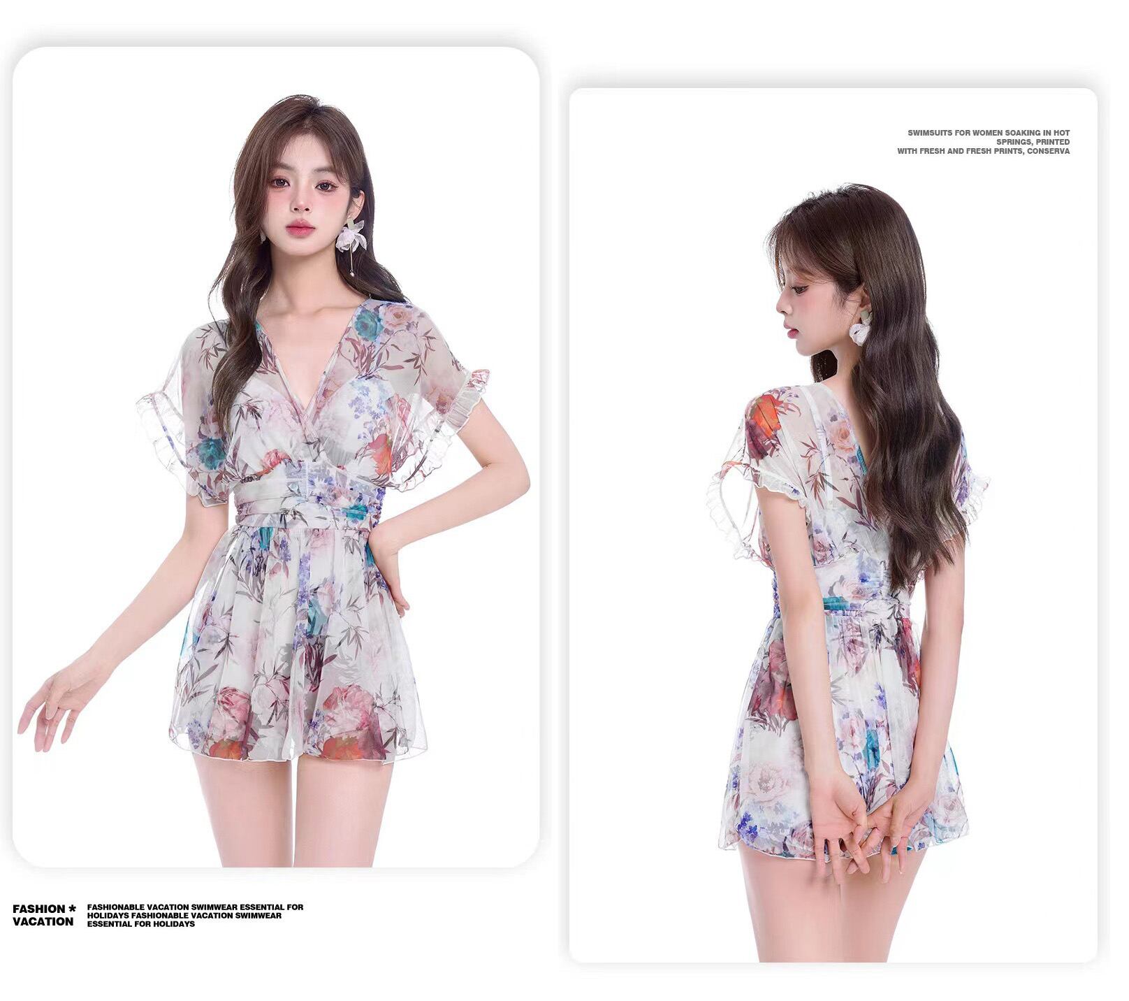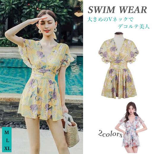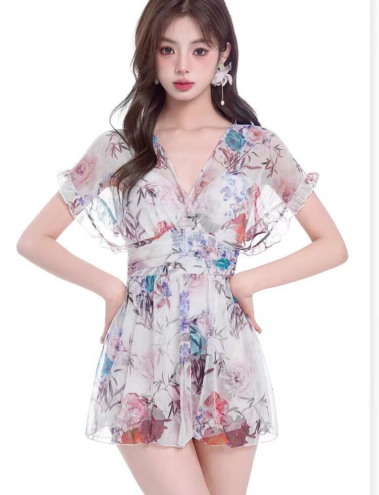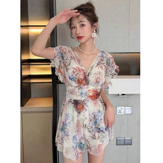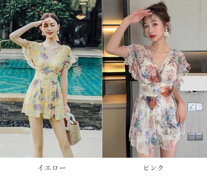 【海外からの取り寄せ】2023新作 ビキニ 水着 海 プール 花柄 ワンピース水着 スカート スイムウェア 袖フリル #[cv154_13800]【送料込み】【250524】