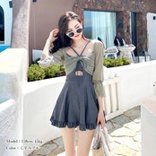 ワンピースデザインで体型をカバーしながら、フェミニンな印象を与えるワンピース水着