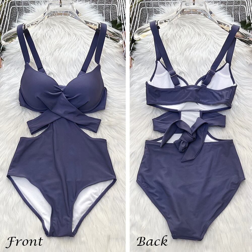 フロントクロス セクシー水着 バックリボン 盛れる水着 ハイウエスト 大人女子 体型カバーママ水着 韓国風 ビーチウェア