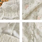後ろにあしらったシャーリングは自然にボディラインにフィットしてくれる花柄のレースキャミソール