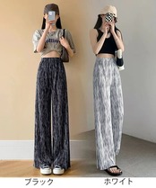 美脚脚長ロングパンツレディース グラデーションパンツ体型カバー ウエストゴム楽ちんパンツ イージーパンツ 韓国風ボトムス