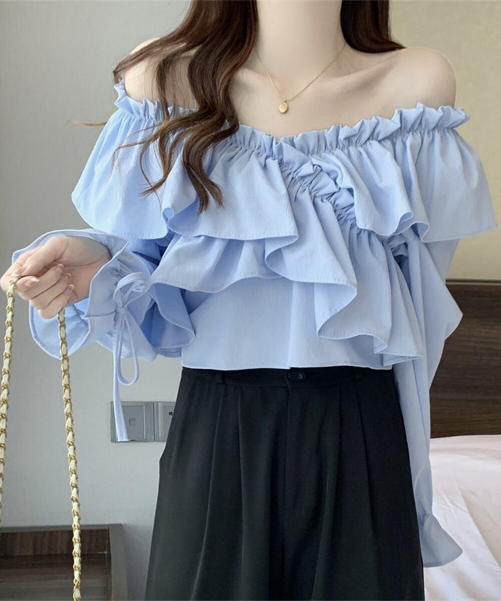 【日本倉庫からの発送】 フリルブラウス オフショルブラウス 長袖 #[84DAIW-002_23800]【送料込み】【250515】