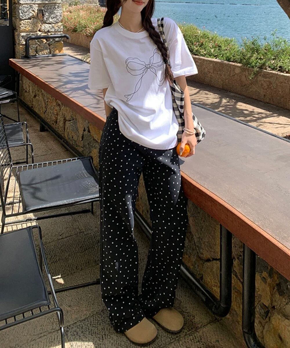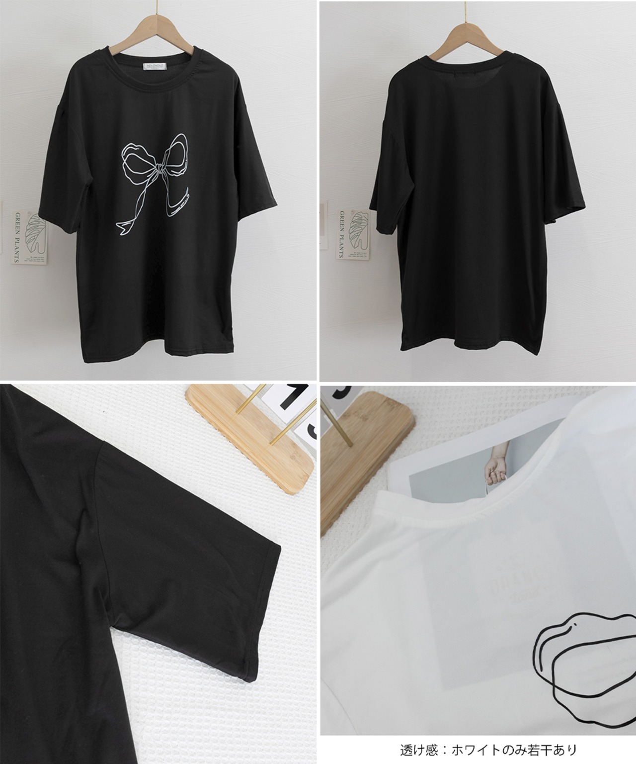 【日本倉庫からの発送】 リボンプリントTシャツ レディース 半袖 #[83JIXI-001_11800]【送料込み】【250708】