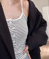 レディースブラキャミ ショート丈 ノンワイヤー Uネックキャミソール ボーダー柄インナー パッド付き インナーウェア夏服