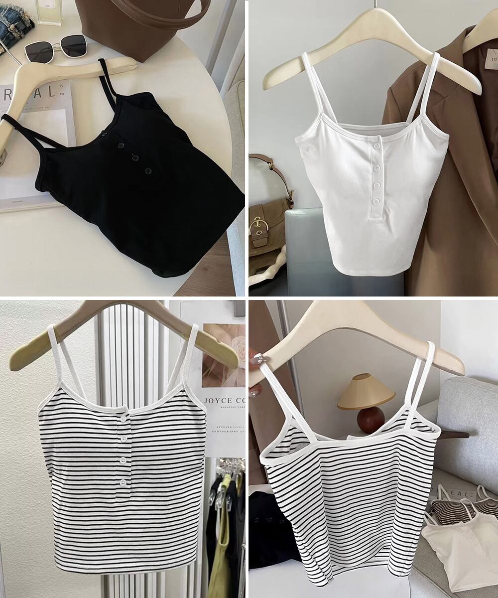 白や黒、ボーダー柄など全5色展開のカップ付き一体型キャミソール