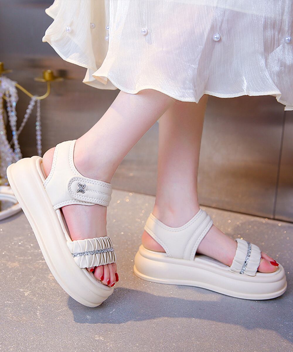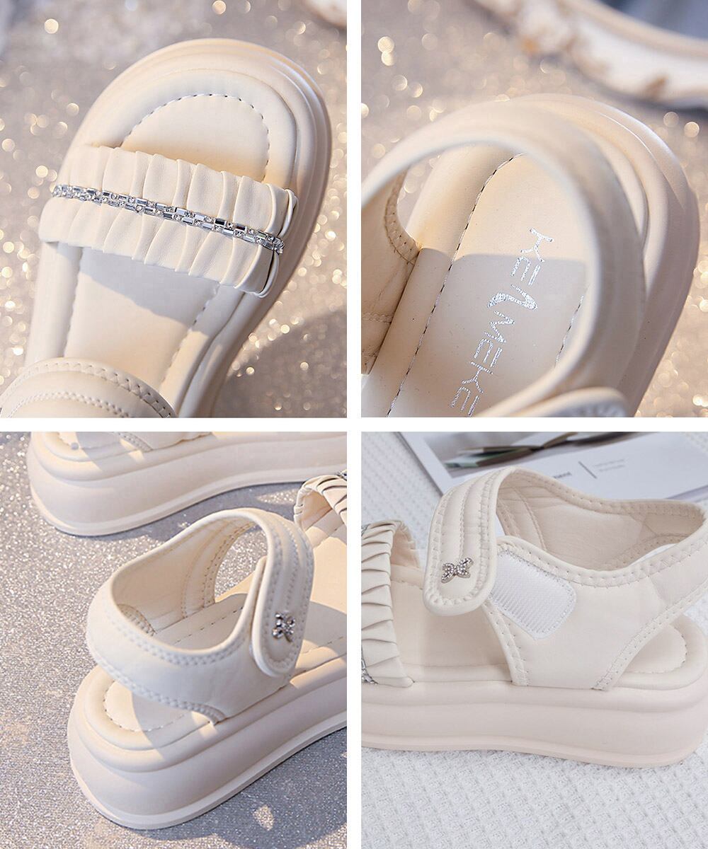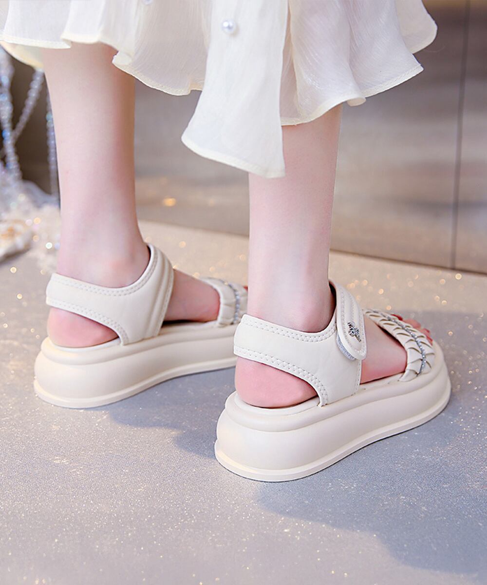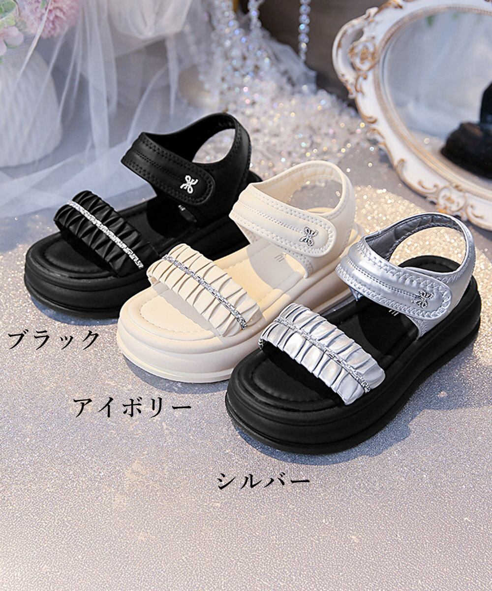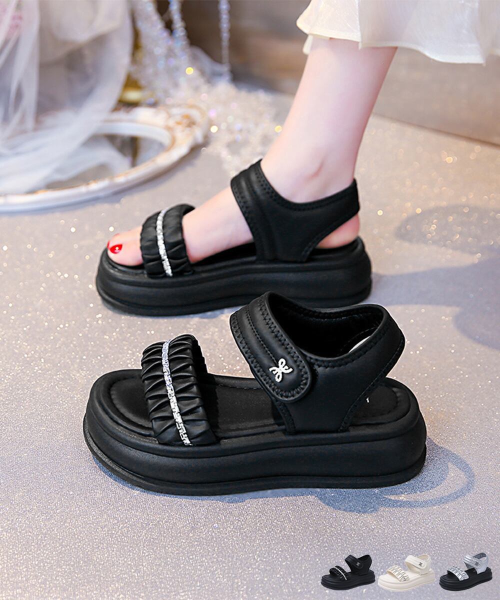 ビジュー付き ボリュームソール ベルトサンダル マジックテープ 軽量サンダル 履きやすいビーチサンダル 美脚 韓国風夏靴