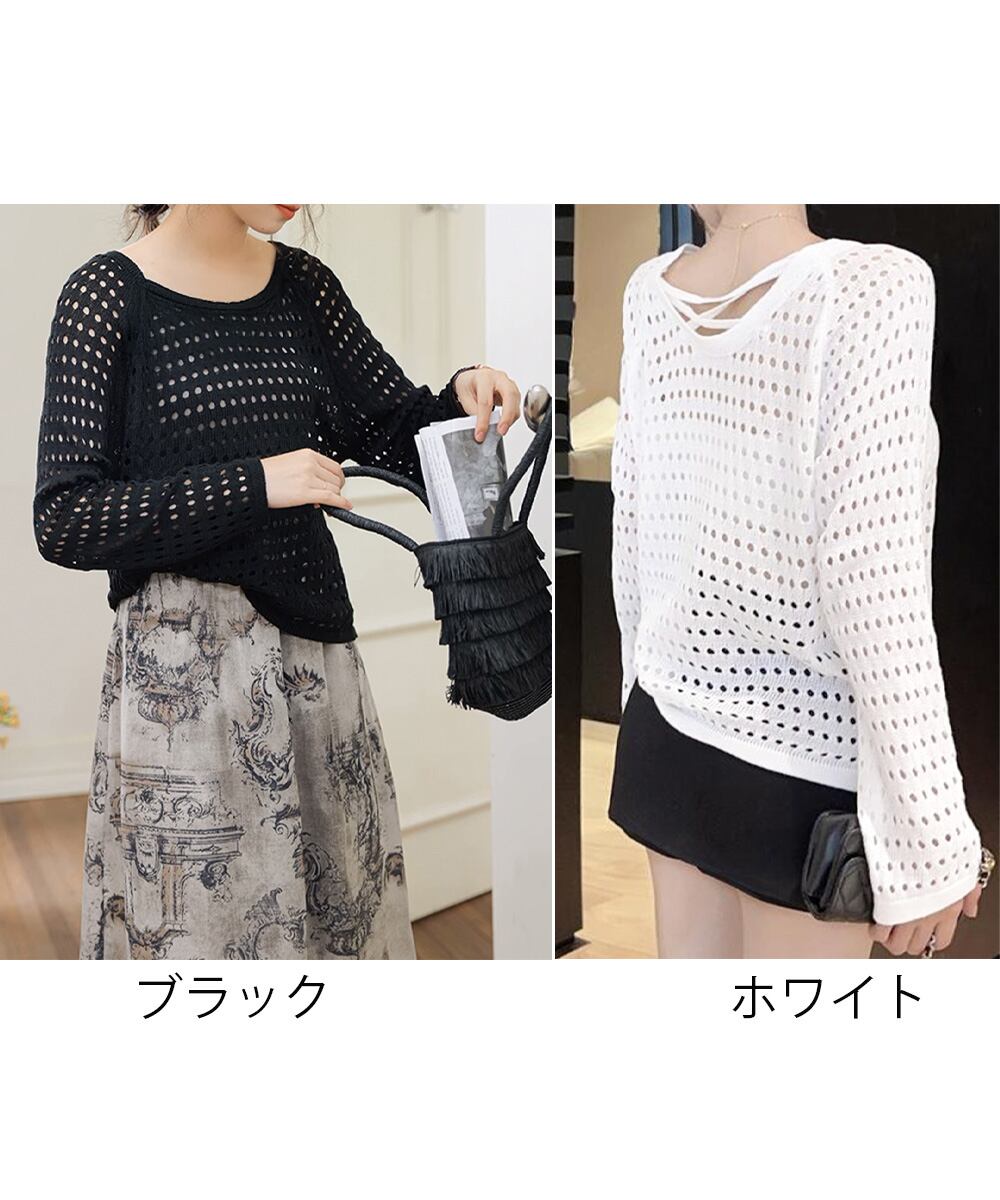 【日本倉庫からの発送】 透かし編みトップス バッククロス春夏秋服 #[24TPS-039_17100]【送料込み】【250514】