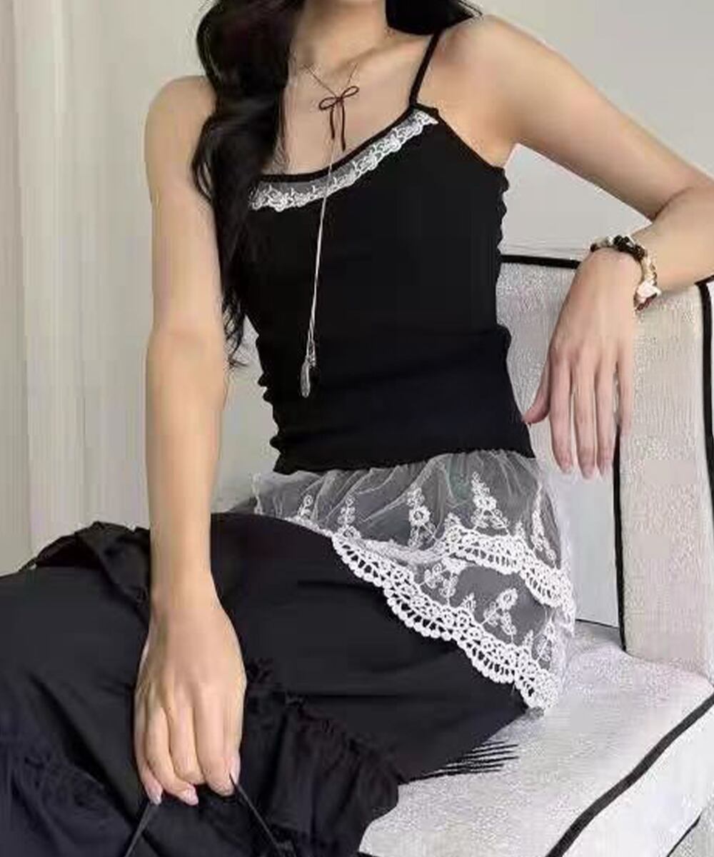 【日本倉庫からの発送】 カップ付きブラキャミソールレース切り替え #[24TPS-037_13300]【送料込み】【250710】