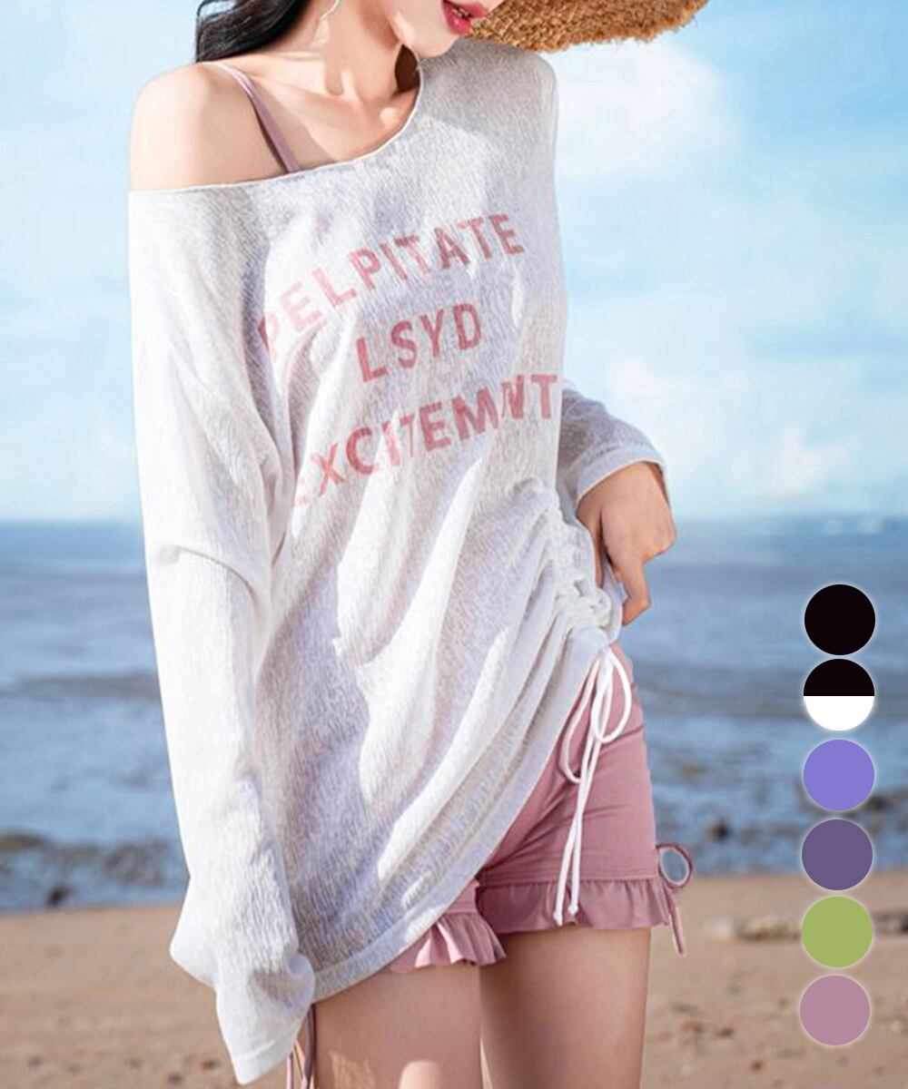 トップス付きセパレート水着 サイドドローストリング フリル大人可愛いママ水着 ラッシュガード プール海旅行 水着タンキニ