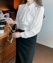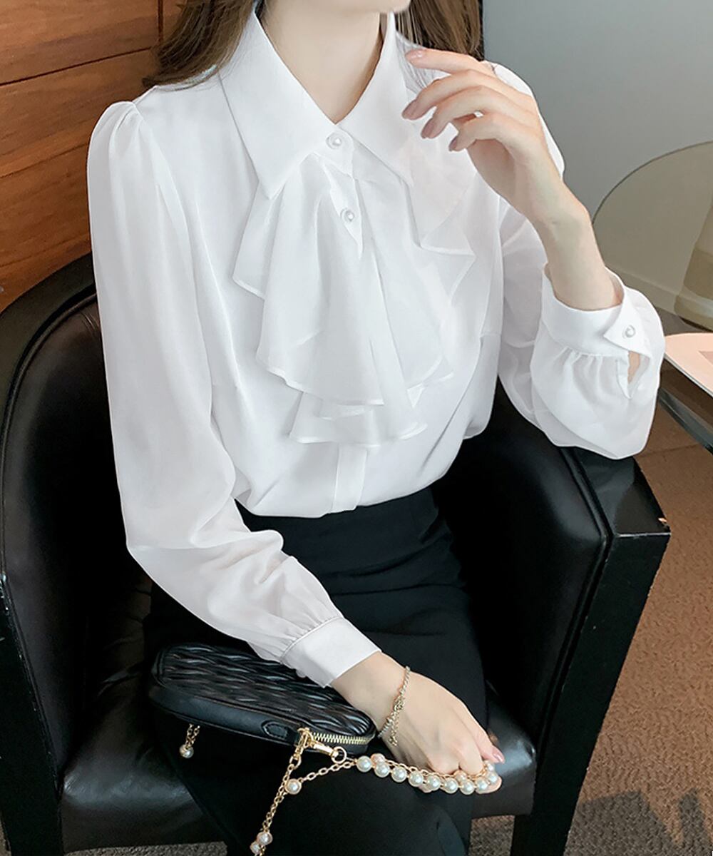 【日本倉庫からの発送】 フリルリボンブラウス韓国風シャツブラウス #[1YIQI-002_23100]【送料込み】【250514】