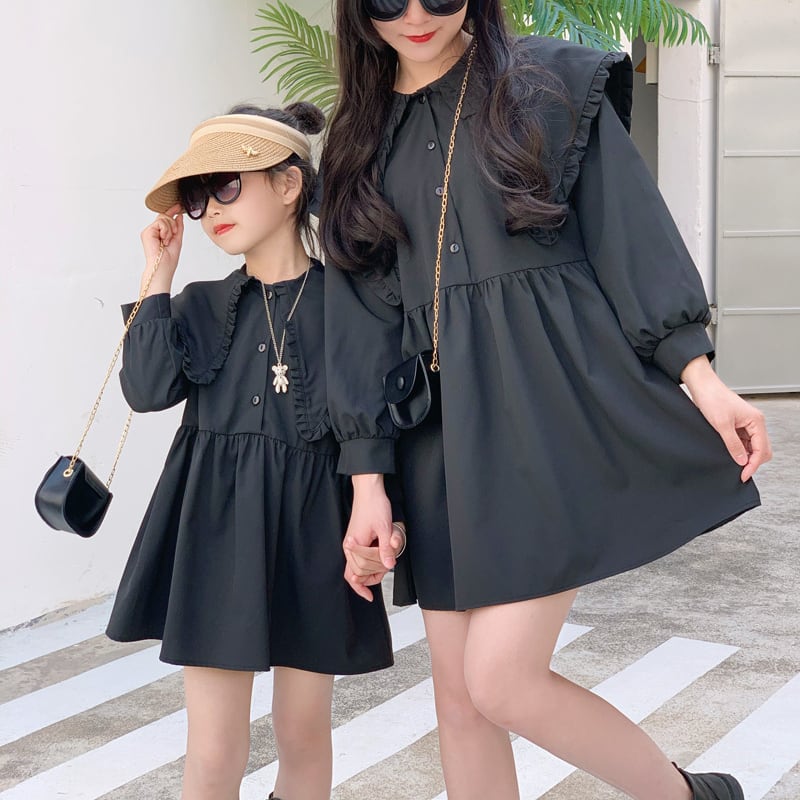 【海外からの取り寄せ】ins 春秋 女の子 ワンピース 親子服 親子ワンピース 無地 大きな襟 ゆったり 可愛い おしゃれ #[ckd1093090_24800]【送料込み】【250525】