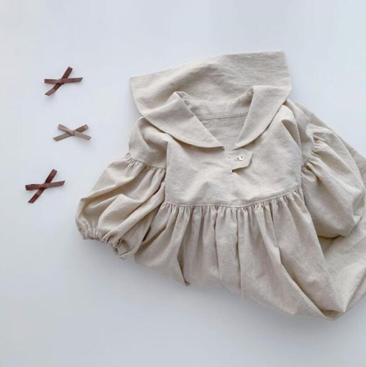 韓国子供服 ゆったり 森ガール リネンワンピース 長袖 無地 おしゃれ 新品 春服 春秋