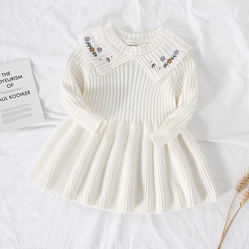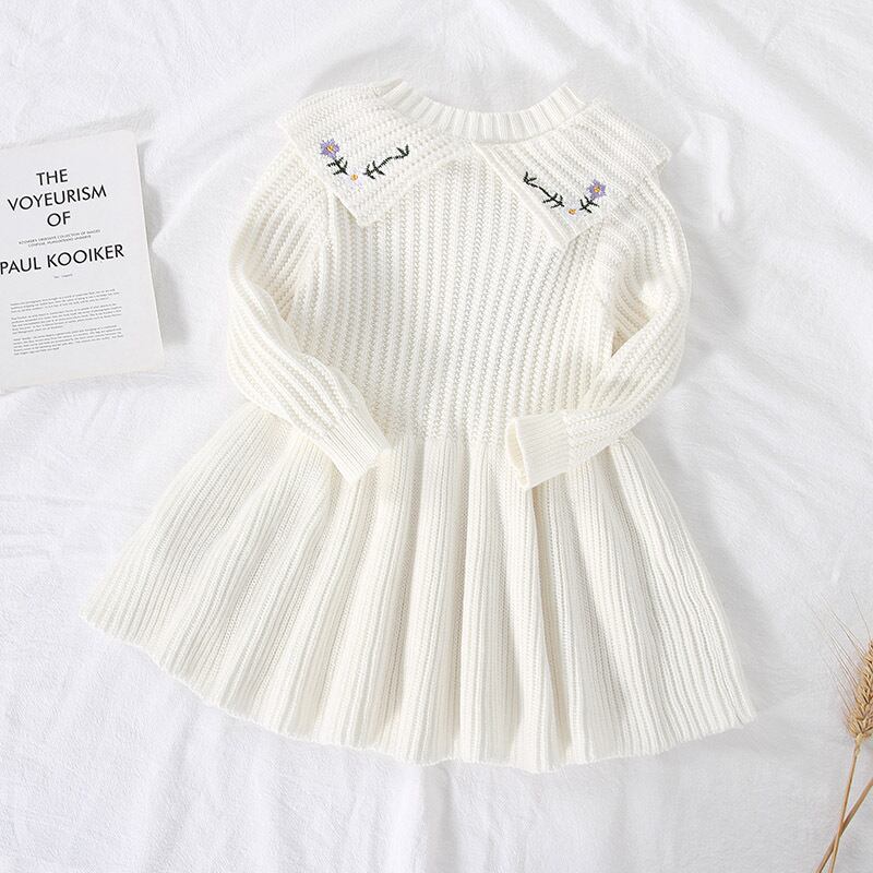 【海外からの取り寄せ】2022秋冬新作 女の子 花柄 刺繍襟 ニットワンピース 無地 可愛い おしゃれ フリル ワンピース #[ckd1091381_19700]【送料込み】【250525】