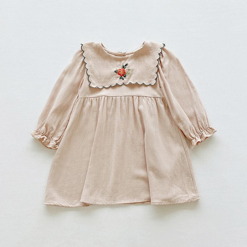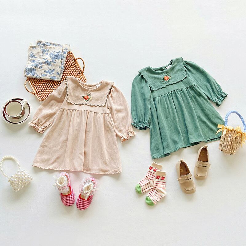 【海外からの取り寄せ】2022秋新作 女の子 刺繍 リネン ワンピース 森ガール 子供服 可愛い 長袖ワンピース 春秋 #[ckd1091311_16000]【送料込み】【250525】
