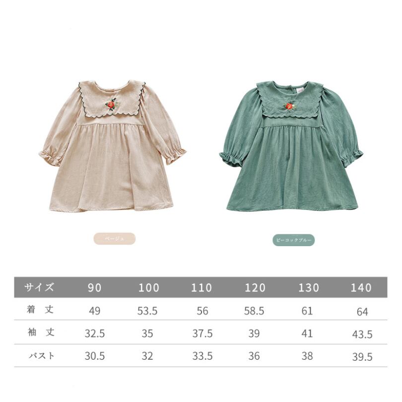 韓国子供服 女の子 森ガール リネンワンピース 刺繍柄 可愛い 新品 人気 新作 春秋