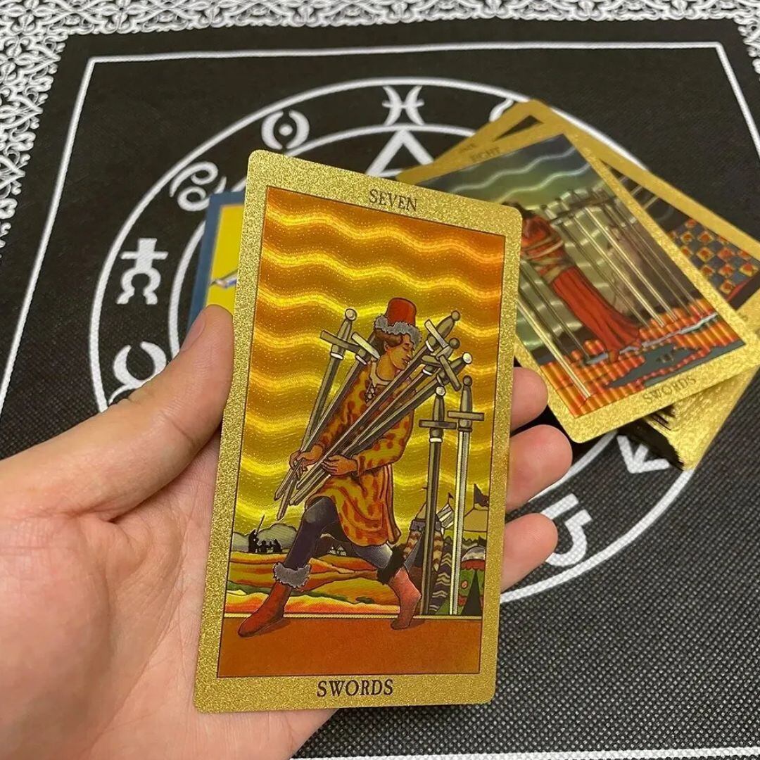 まばゆい輝きが運勢を引き寄せる、豪華なゴールド仕様のタロットカードです。レトロな歴史的デザインとホログラフィックホイルプリントで、よりプレミアム感を醸し出します