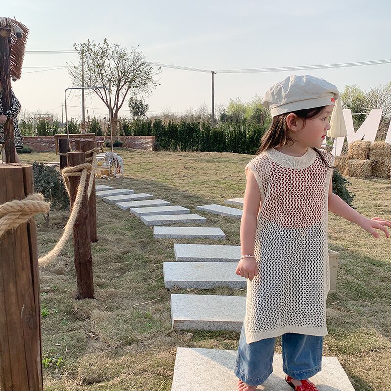 【海外からの取り寄せ】2023夏新作 子供服 女の子 森ガール 透かし雕り ワンピース ニット 重ね着 ノースリーブ おしゃれ #[ckd1091895_15800]【送料込み】【250524】