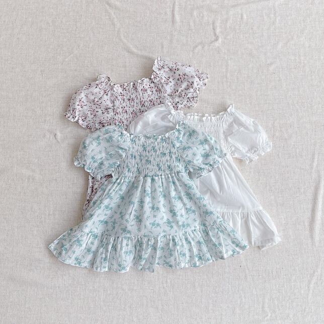 【海外からの取り寄せ】2023夏新作 ベビー服 女の子 森ガール 花柄 半袖 ワンピース 可愛い おしゃれ パフスリーブ #[ckd1091822_21400]【送料込み】【250524】