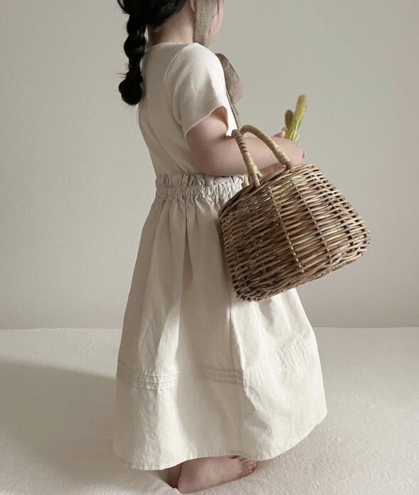 【海外からの取り寄せ】2023夏新作 女の子 Aライン パフスリーブ ワンピース 森ガール 子供服 リブ+リネン おしゃれ #[ckd1091783_23600]【送料込み】【250524】