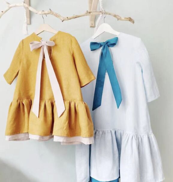 【海外からの取り寄せ】2023夏新作 女の子 リネン リボン ワンピース 森ガール 子供服 可愛い おしゃれ フリル #[ckd1091781_25300]【送料込み】【250524】