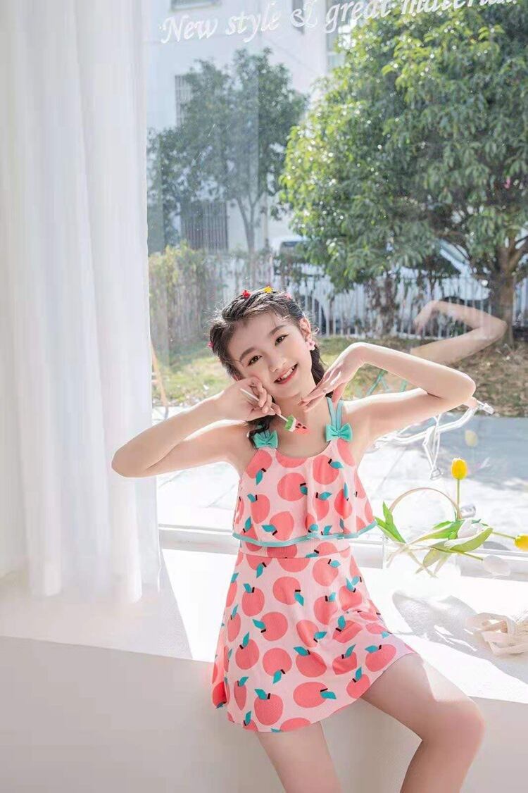 【海外からの取り寄せ】2023新作 キッズ 子供 ワンピース 水着 スカート 水色 ピンク パープル フルーツ かわいい 女の子 #[cv160_8800]【送料込み】【250607】