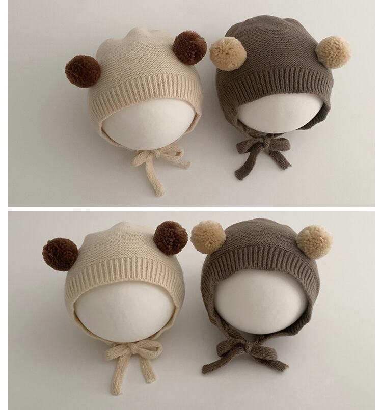 ・上部にミニポンポンが二つ付いた可愛いベビーニット帽。