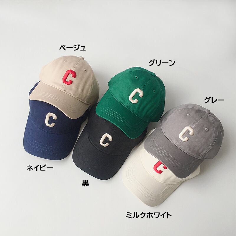 ・ワンポイント刺繍が入ったシンプルキャップで男の子女の子どちらにも合わせやすいデザイン。