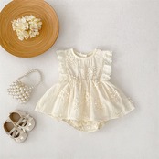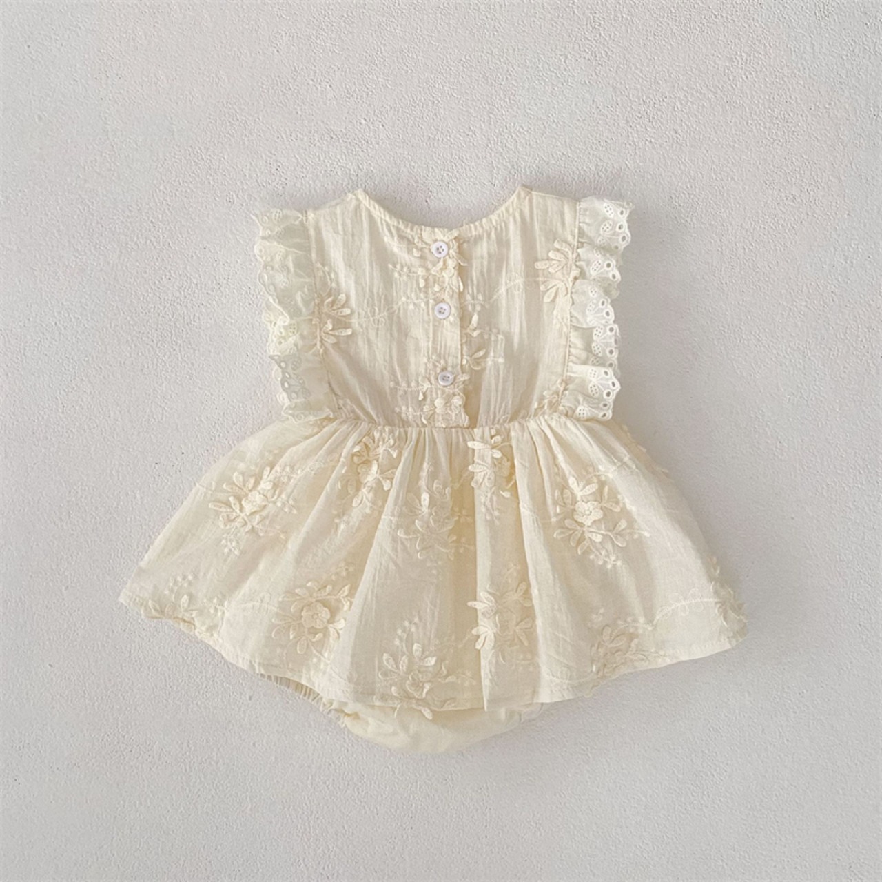【海外からの取り寄せ】2025夏新作 ベビー服 レース フラッタースリーブ ロンパース 女の子 可愛い 刺繍花柄 子供服 #[ckd1094598_18200]【送料込み】【250727】