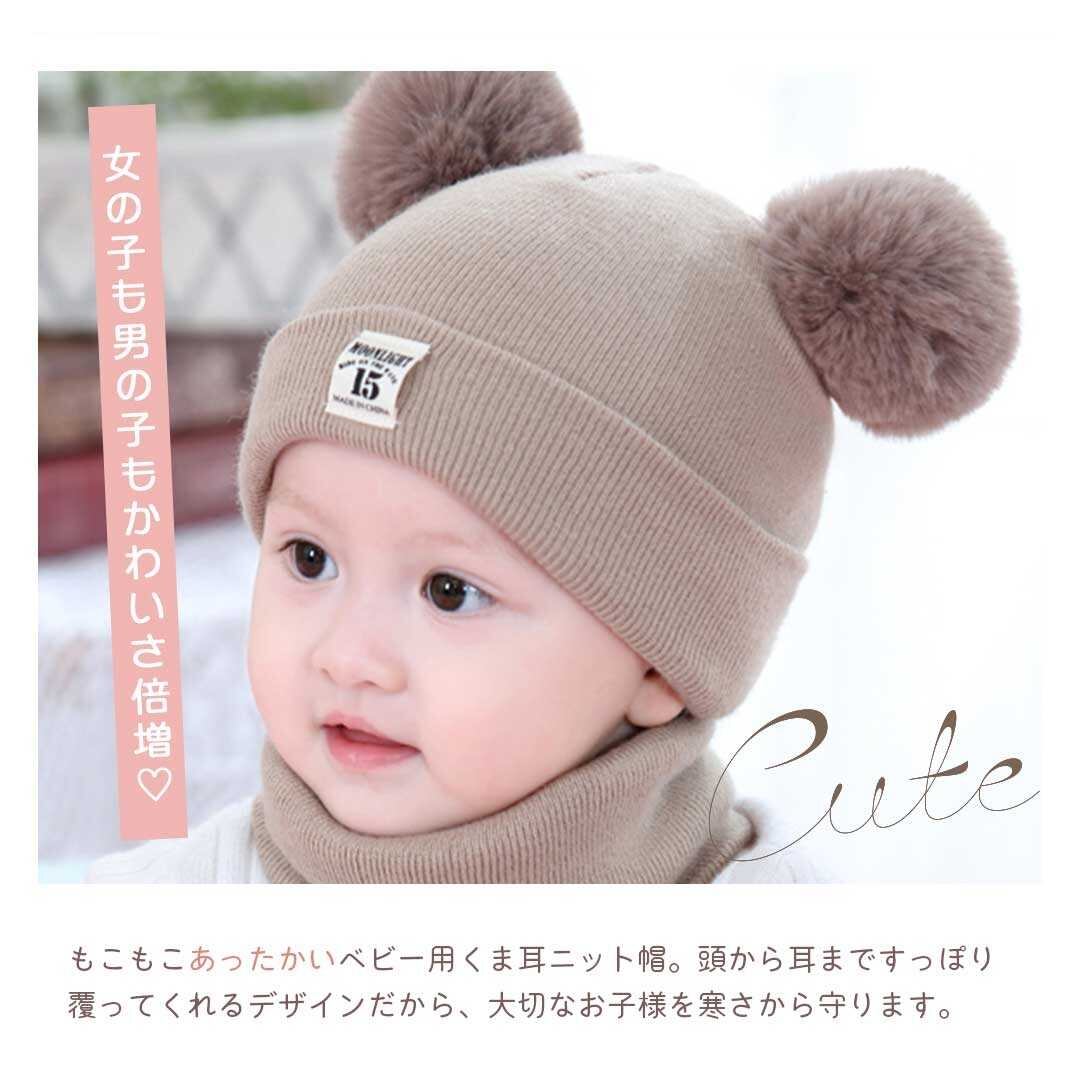 ニット帽 くま耳 キッズ ベビー ポンポン付き 全6色 耳 くま 帽子 赤ちゃん 冬 ニット あったか くま帽子 #[20240213-4826_11600]【送料込み】【250508】