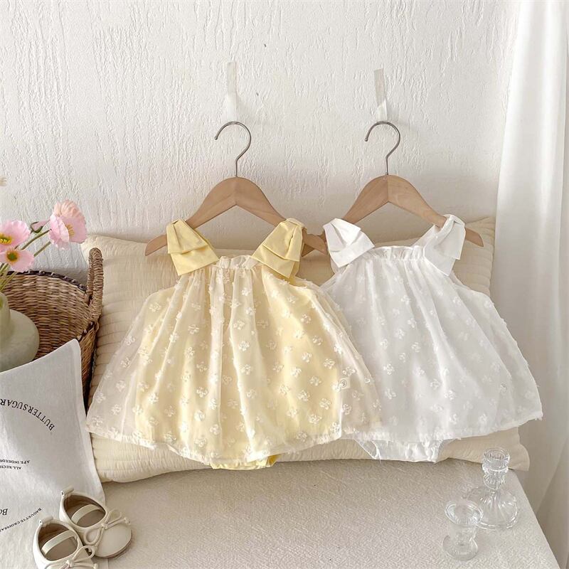 【海外からの取り寄せ】2025夏新作 ベビー服 ジャカード キャミロンパース 女の子 可愛い リボン おしゃれ 子供服 2色 #[ckd1094597_15700]【送料込み】【250612】