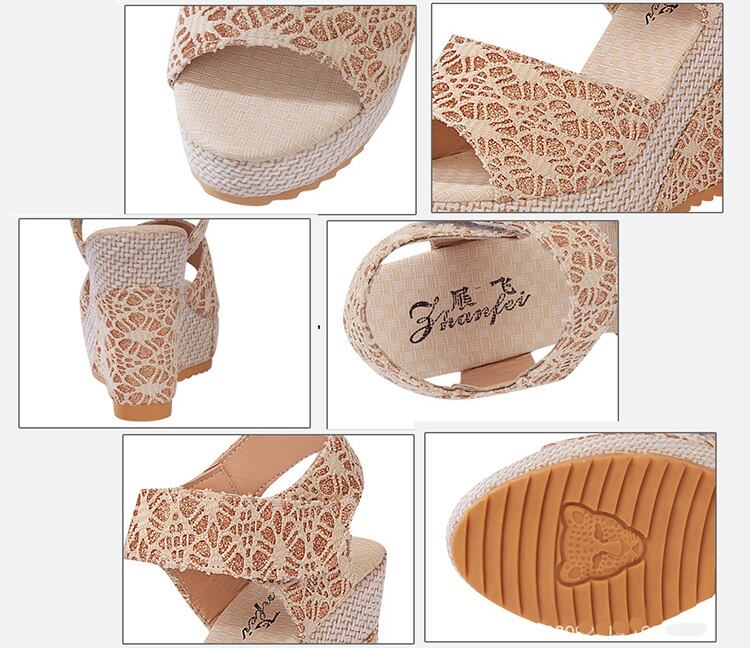 【海外からの取り寄せ】【海外買付】2019レディース厚底サンダル レース 花柄 切替 ウェッジソール ストラップ オープントゥ #[sandal032_13800]【送料込み】【250704】