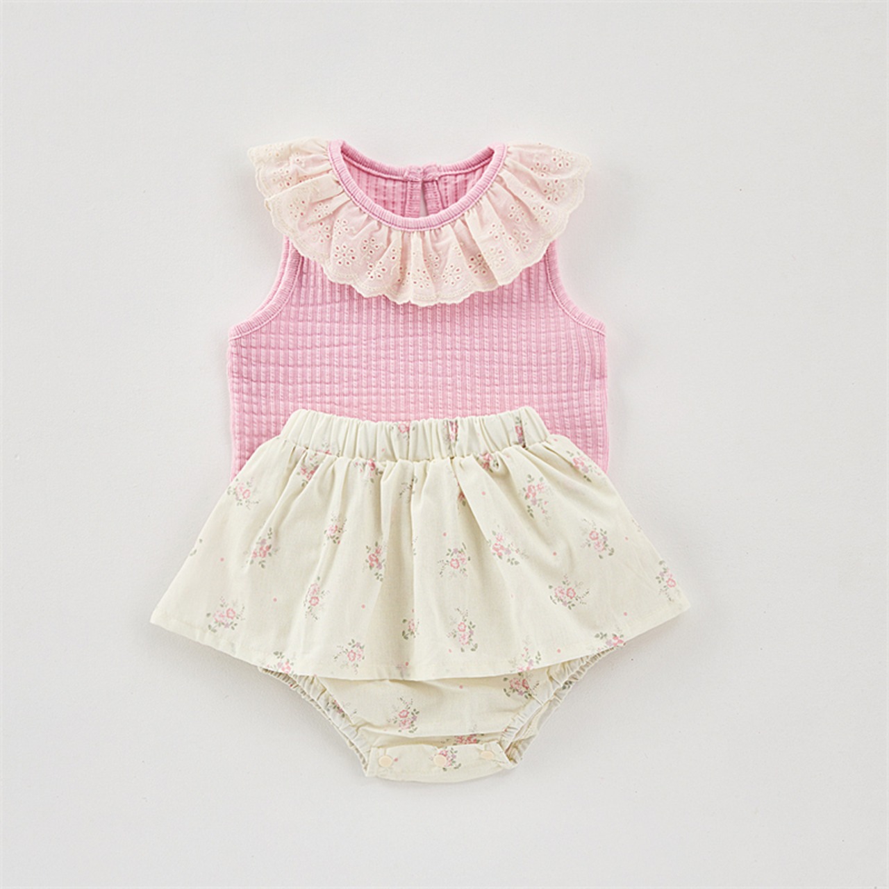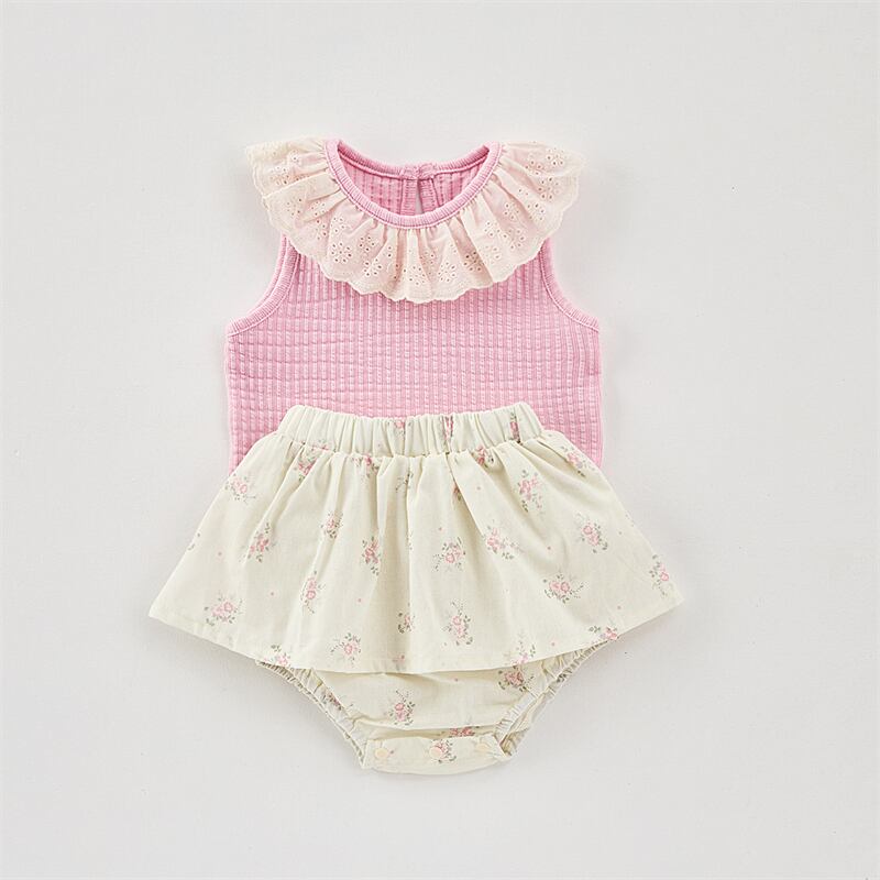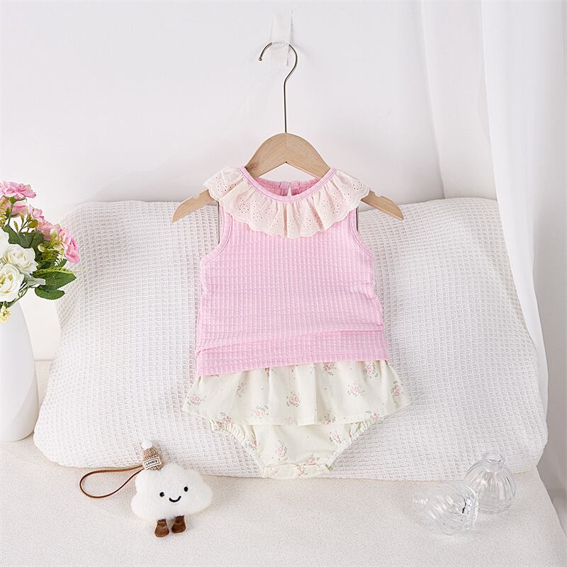 【海外からの取り寄せ】2025夏新作 女の子 セットアップ レース キャミソール 花柄ブルマー おしゃれ 子供服 可愛い 2色 #[ckd1094605_16800]【送料込み】【250531】