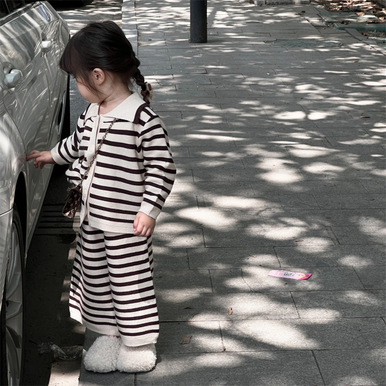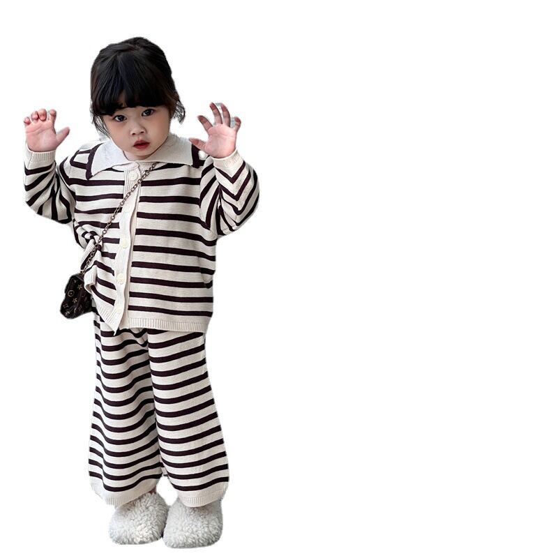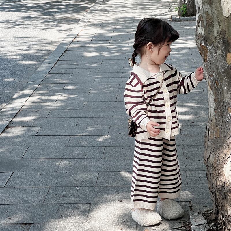 【海外からの取り寄せ】2022秋新作 ins ニット 子供服 2点セット トップス パンツ ストライプ 女の子 可愛い #[ckd1091057_26000]【送料込み】【250513】